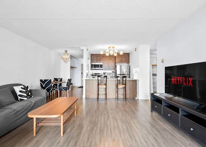 O apartamento Central Downtown At Rocky Mountain Court With Gym, Court, Sauna And Secured Parking YYC está localizado a caminhada de 11 minutos dos Jardins de Devonian e atrai os hóspedes com sauna. Neste apartamento, Wi-Fi e parque de estacionamento privado gratuito também são fornecidos.